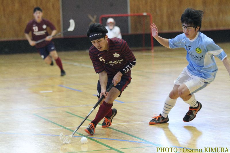 日本フロアボール選手権 2019 男子1回戦 神奈川フロアボールクラブ 対 国士舘大学 会場=駿河台大学体育館 神奈川フロアボールクラブ 4 (1-0,0-0,3-2) 2 国士舘大学 【撮影 : 木村 理】