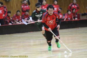 日本フロアボール選手権 2018 男子1回戦 仙台大学フロアボールクラブ 対 調布フロアボールクラブ 会場=駿河台大学体育館 仙台大学フロアボールクラブ 4 (1-1,1-2,2-0) 3 調布フロアボールクラブ 【撮影 : 木村 理】