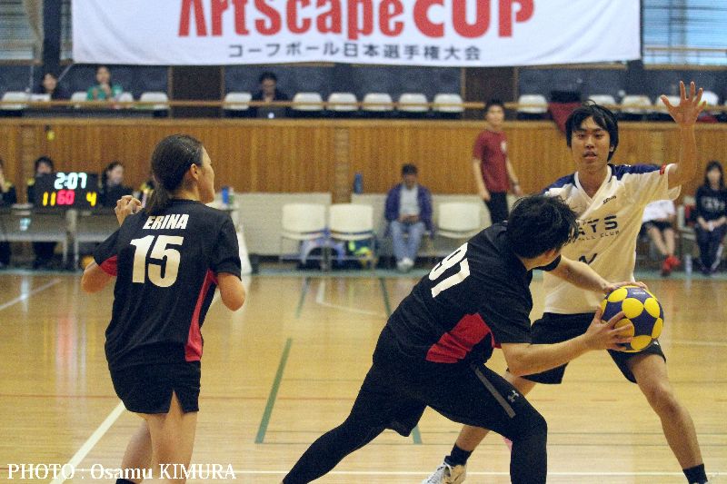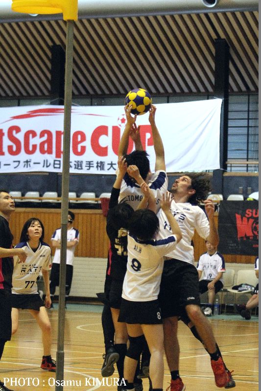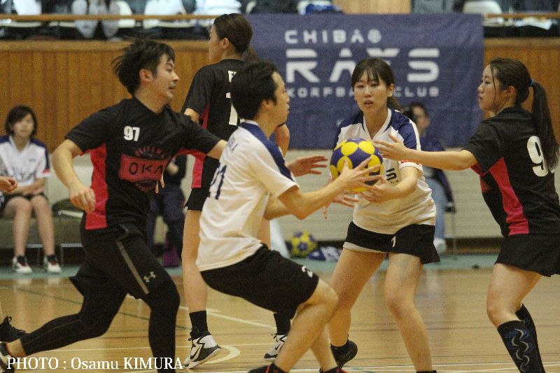 ArtScapeCUP 第11回コーフボール日本選手権 岡山県協会・横浜CELESTE 対 千葉RAYS 会場=茨城県つくば市・洞峰体育館 第1日目 第2試合・予選リーグBグループ ●岡山県協会・横浜CELESTE 4対11 千葉RAYS○ 【撮影 : 木村 理】